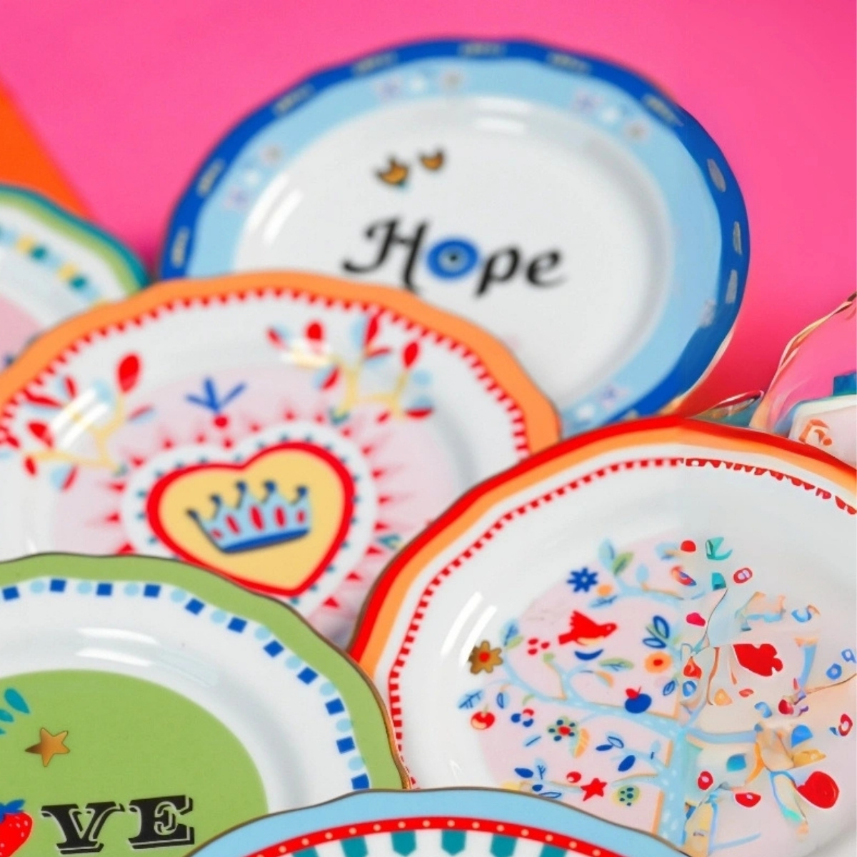 Renklerin bir kaleidoskopu, ilgi çekici semboller, gizemli yazılar ve büyüleyici çizimlerle dolu; her detayda keşfedilmeyi bekleyen görsel bir senfoni. "Mamma Mia" koleksiyonu, sadece sofranıza değil, evinizin her köşesine de canlılık katma amacıyla tasarlandı. Geleneksel el sanatlarının ustalığından çağdaş grafik tasarımların cesur hatlarına kadar çeşitli etkenlerden ilham alan bu koleksiyon, çeşitliliğe bir övgü niteliğindedir. Cesur ve karşı konulamaz renkler, her anı canlı bir deneyime dönüştürerek genç ve şenlikli bir atmosfer yaratmak için bir araya geliyor. Baci Milano Mamma Mia "Hope" Yazılı Tatlı Tabağı, zarif ve umut dolu bir tasarıma sahip özel bir üründür. 16 cm çapındaki bu tatlı tabağı, Mamma Mia koleksiyonunun özgün tarzını yansıtır ve üzerindeki "Hope" yazısıyla pozitif enerji ve umudu tatlı sunumlarınıza taşır. Yüksek kaliteli porselen malzemeden üretilmiş olan bu tatlı tabağı, dayanıklılığı ve estetiği bir arada sunar. Modern ve zarif tasarımıyla tatlı sunumlarınızı güzelleştirirken, "Hope" yazısıyla da umut ve iyimserlik duygularını pekiştirir. Bu tabak, özel günlerde veya günlük kullanımda anlamlı bir hediye veya ikramlık olarak tercih edilebilir. Mamma Mia koleksiyonunun umut dolu ve ilham veren ruhunu yansıtan bu tatlı tabak, sofralarınıza pozitif bir atmosfer ve mutluluk getirecektir.
