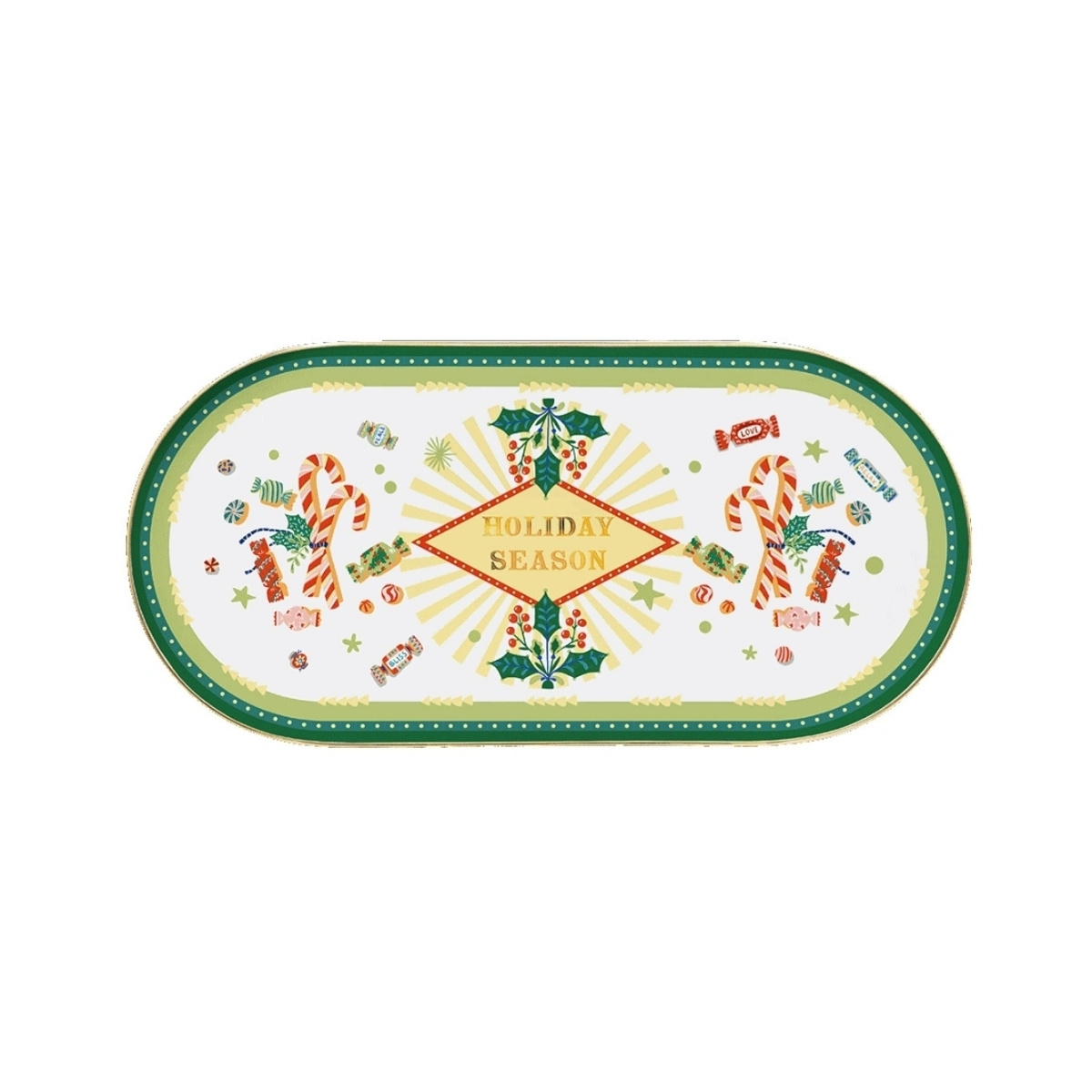 Baci Milano’nun Mamma Mia Yılbaşı koleksiyonuna ait bu oval tepsi, yılbaşı ruhunu sofralarınıza taşıyor. Zarif ve göz alıcı tasarımıyla, çay, kahve ve tatlı sunumlarınızı şık bir şekilde tamamlar. Dayanıklı porselen yapısı sayesinde hem günlük kullanım hem de özel davetler için ideal olan bu tepsi, yılbaşı temalı desenleriyle sofralarınıza sıcak ve neşeli bir dokunuş katar. Atıştırmalıklar, kurabiyeler veya içecek servisi için mükemmel bir seçimdir. Şık ve kullanışlı bir hediye alternatifi olarak da tercih edebilirsiniz.