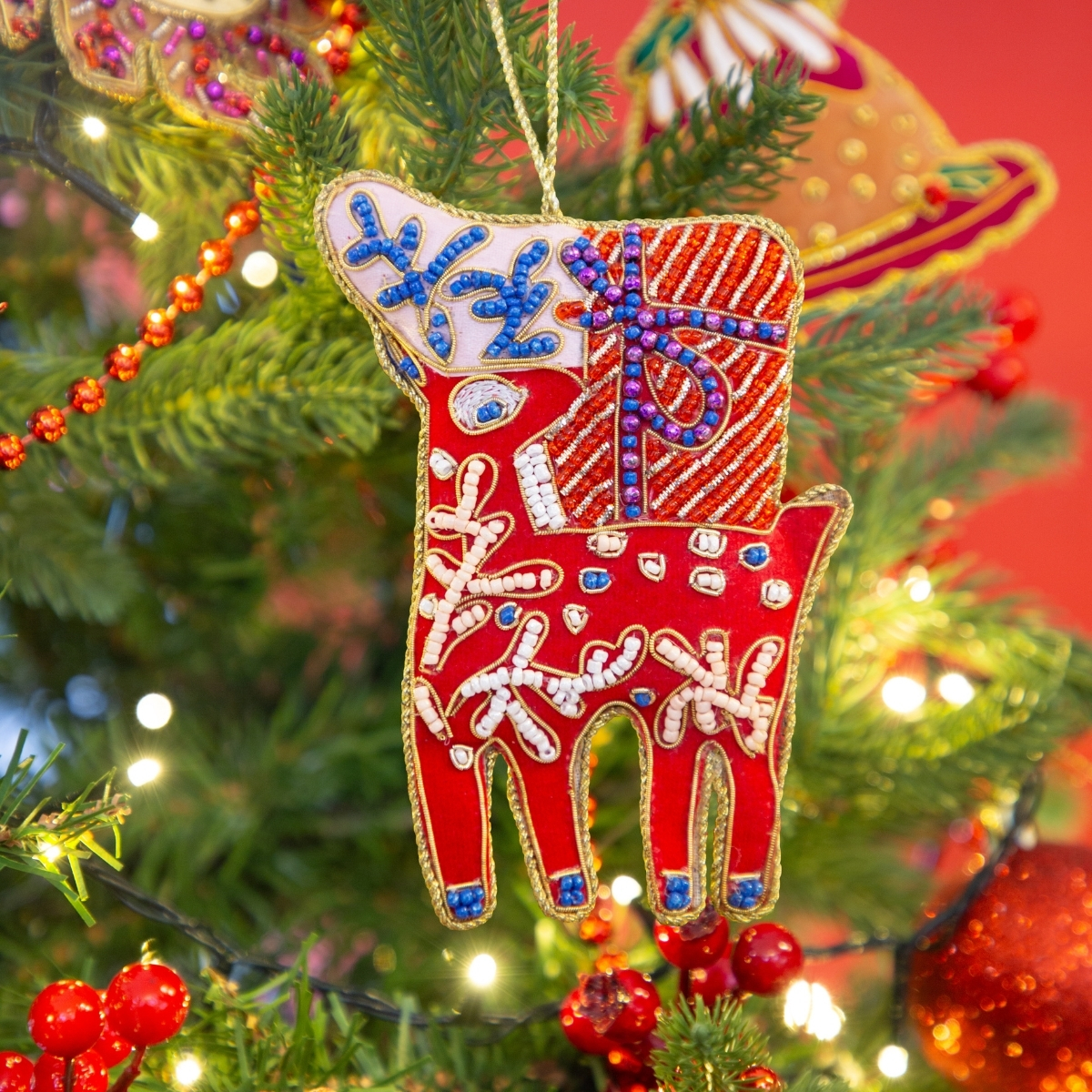 BM Mamma Mia Kumaş Ren Geyiği, yılbaşı ve sezonluk dekorasyonlarda kullanılan şık bir kumaş süs objesidir. Ren geyiği formundaki tasarımıyla dekorasyona eğlenceli ve sıcak bir hava katar; çam ağacı, masa üstü, pencere veya duvar gibi farklı noktalarda asılarak veya sergilenerek kullanılabilir.