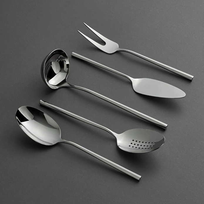 Jumbo 1001 5 parça çelik servis seti gerek malzemesi gerek tasarımıyla kullanıcılardan tam puan alıyor. Takım içinde yer alan parçaların her biri birinci sınıf paslanmaz çelik malzemeden imal ediliyor. Sette, bir sofrada yemek servisi yaparken ihtiyaç duyacağınız her parça mevcut. Bir adet servis kepçesi, bir adet servis kaşığı, bir adet servis küreği, bir adet servis kaşığı ve bir adet servis kevgiri sayesinde ister tencere yemeklerini isterseniz de tekli parçaları tabaklara kolaylıkla alabilirsiniz. 18/10 paslanmaz çelik Jumbo 1001 5 parça servis setindeki kevgir, ortasındaki minik açıklıklar sayesinde tencere yemeklerindeki su miktarını tam istediğiniz gibi ayarlayıp servis etmenize yardımcı olurken çatalsa parça etleri ya da sebzeleri tabaklamak için ideal. Siz de böylesine kaliteli ve şık bir servis seti arayışındaysanız Jumbo'yu tercih edin, rahat edin!