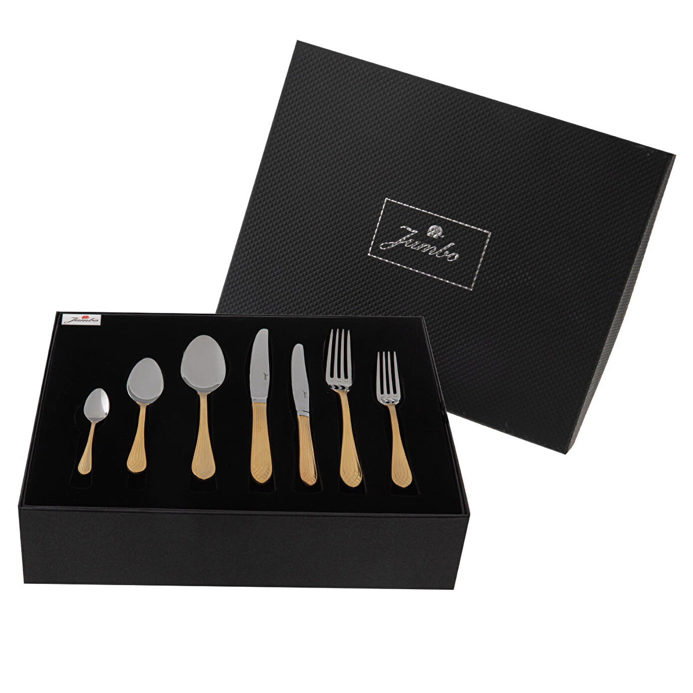 Jumbo 4100 Mat Altın 12 Kişilik 84 Parça Çatal Kaşık Bıçak Seti