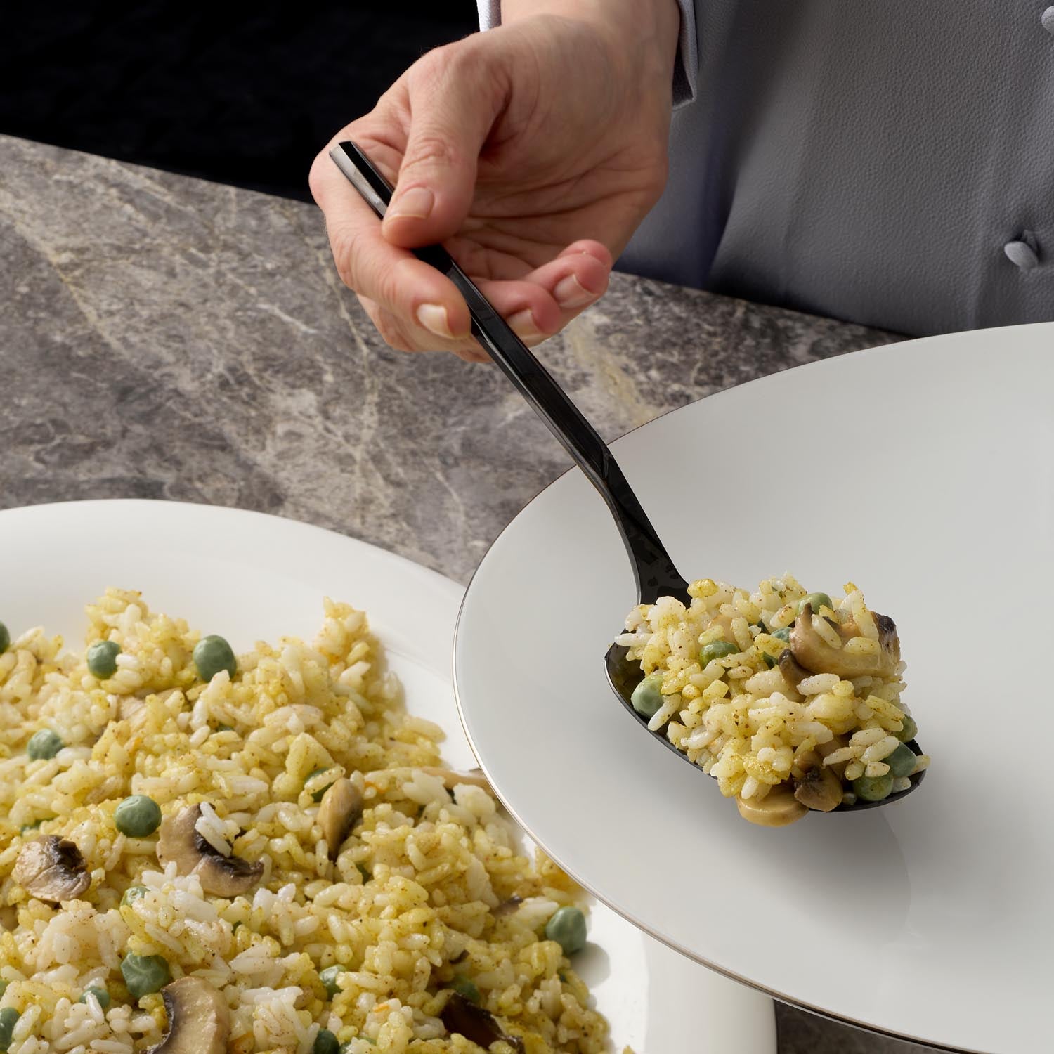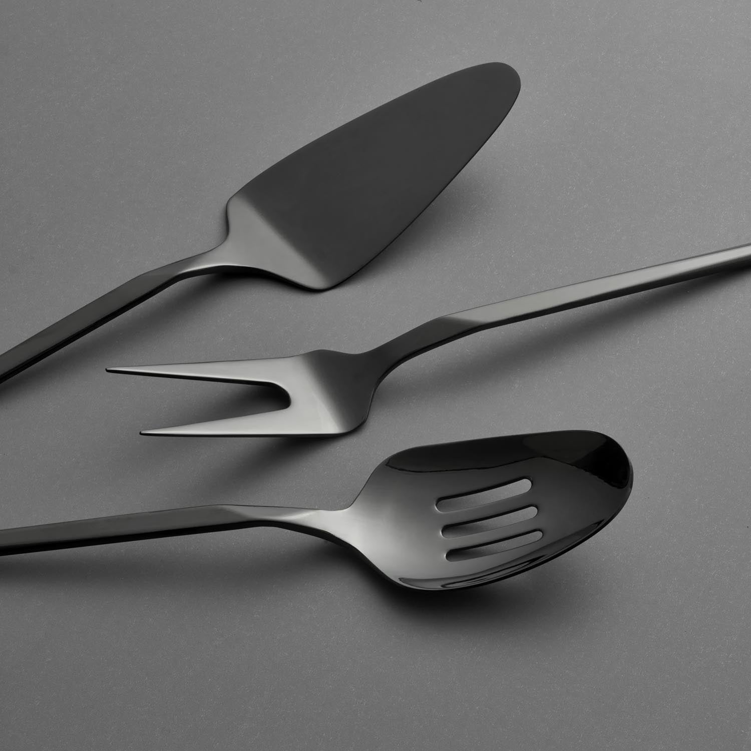 5 parçadan oluşan Jumbo 5100 servis seti, her çeşit yemeği rahatlıkla servis edebilmenize yardımcı oluyor. Set içerisinde servis çatalı, kaşığı, pasta küreği, çorba kepçesi ve yemek kevgiri yer alıyor. Her bir parça özenle tasarlanmış olup ergonomik bir yapıya sahip. Böylece kolay bir şekilde yemek sunumu yapabilmenizi sağlıyor. Siyah rengi sofralarınıza zarif bir dokunuş katarak misafirlerinizi etkileyebilmenize yardımcı oluyor. Siyah rengi diğer sofra gereçleri, çatal, kaşık, bıçak takımlarınız ile de kolaylıkla uyum sağlayabiliyor. Dolayısıyla sofra bütünlüğünüz bozulmadan harika sofralar hazırlayabilirsiniz. Siz de Jumbo 5100 titanyum siyah servis setiyle unutulmaz sofralar hazırlayabilir, sevdiklerinizle keyifli ve rahat servis yağabildiğiniz sofralarda buluşabilirsiniz.