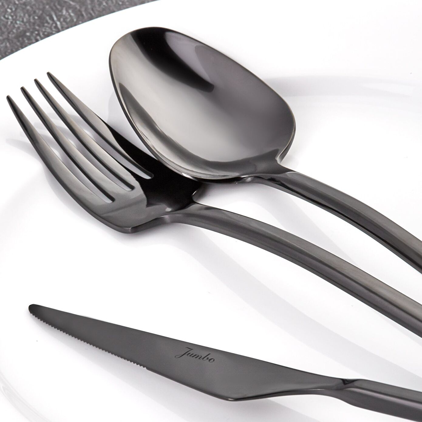 Jumbo 5500 Titanyum Siyah 12 Kişilik 84 Parça Çatal Kaşık Bıçak Seti