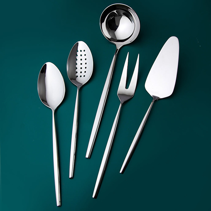 Jumbo 5900 5 parça servis seti paslanmaz çelik malzemesi ve zamansız tasarımı ile karşınızda! Bu sofra gereçleri sayesinde yemek servislerinde rahat edeceksiniz. Parçaların her birinin birinci sınıf çelik malzemeden imal edilmiş olduğu bu set içinde bir adet servis kaşığı, servis kevgiri, servis kepçesi, servis çatalı ve servis spatulası bulunuyor. Siz de sofranızda böyle kaliteli ve zamansız sunum gereçleri kullanmayı tercih edenlerdenseniz Jumbo 5900 5 parça servis setini sadece birkaç tıkla hemen şimdi satın alabilirsiniz. Tek yapmanız gereken ürünü sepetinize eklemek. Alışverişi tamamladığınızda satın aldığınız bu ürün, kısa süre içinde kapınıza kadar gönderiliyor. Jumbo 5900 5 parça paslanmaz çelik servis seti, burada sizi bekliyor. Acele edin!