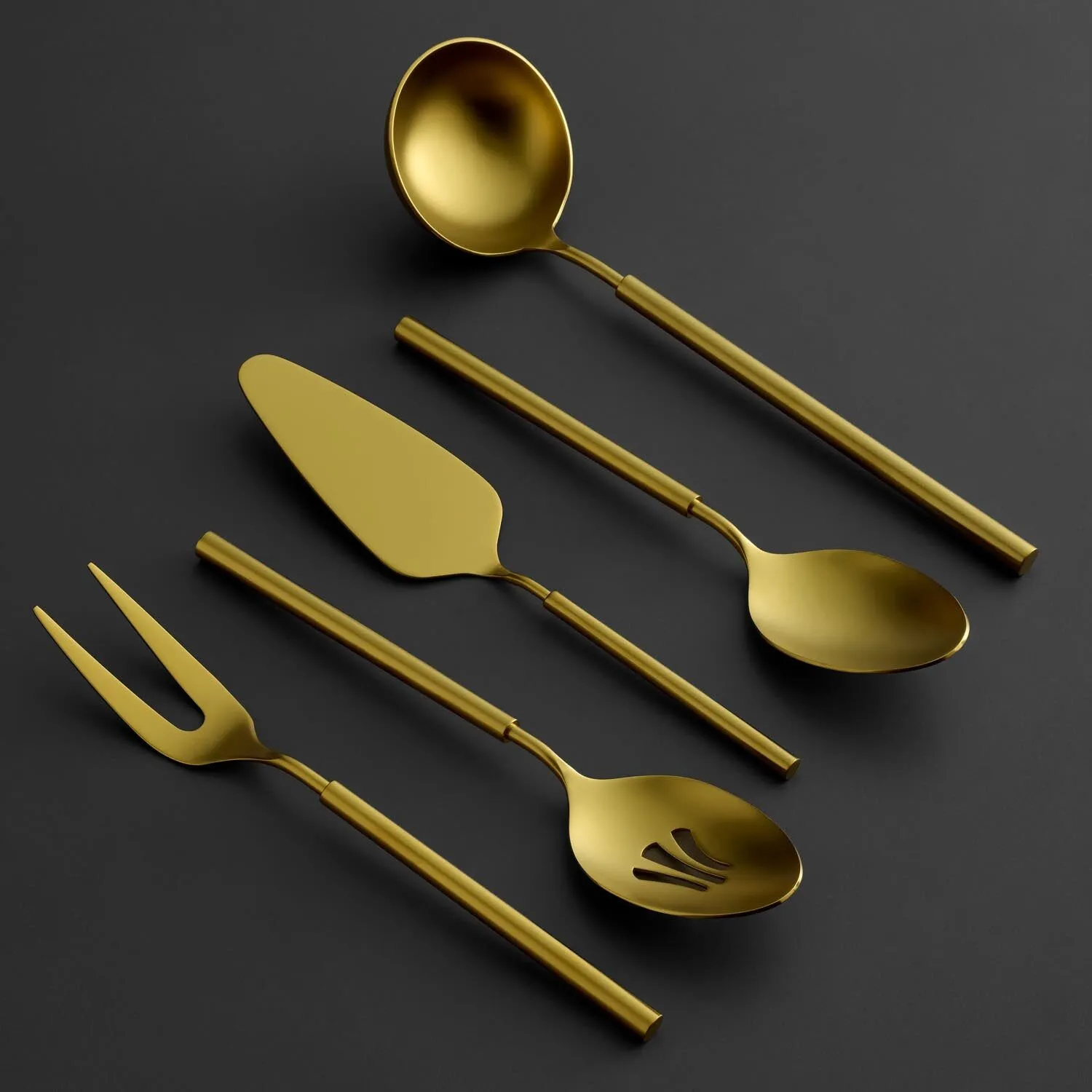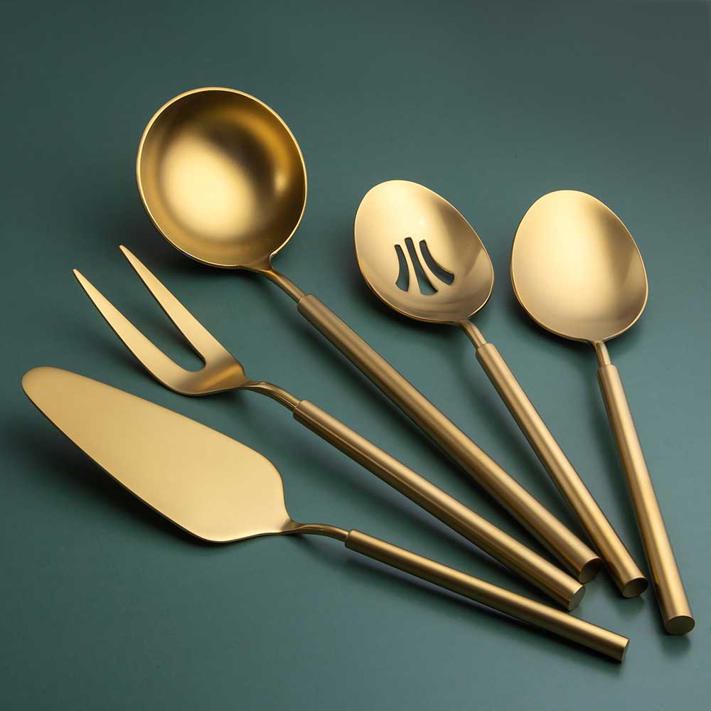 Benzersiz tasarımı ile karşınıza çıkan Jumbo 6000 Roller 5 parça servis seti, yemek sunumlarınızı kolaylaştırıyor. Sofra deneyiminizi yükselten bu servis seti dayanıklı yapısı ile de kaliteli bir duruşa sahip. Paslanmaz çelikten üretilen bu servis seti titanyum gold kaplama olup sete lüks bir hava katıyor. Modern tasarımı başka hiçbir yerde göremeyeceğiniz bir tarza sahip olup özenle üretiliyor. Estetik görünümü ile gerek yemek sofrasına gerek mutfağa şık bir hava katarken işlevsel özelliği ile de ikramlarınızı pratik bir şekilde yapabilmenize yardımcı oluyor. İdeal boyutları kolay muhafaza edebilmenize yardımcı olurken ergonomik tutma sapları da rahat bir tutuş sağlıyor. Böylece yemek servislerinizi hızla yapabilirsiniz. Siz de Jumbo 6000 Roller mat titanyum gold renkli servis seti ile dilediğiniz yemeği gönül rahatlığıyla servis etmek için hemen sipariş oluşturabilirsiniz.
