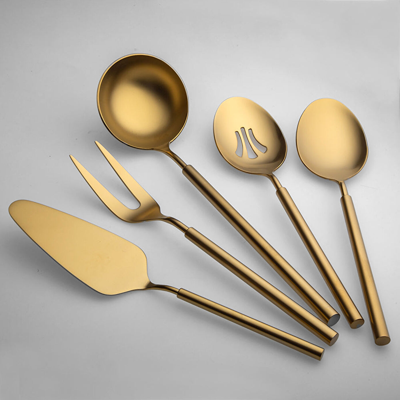 Jumbo 6000 Roller servis seti şık tasarımıyla beğenileri topluyor. 5 parçadan oluşan bu setin içerisinde yemek kevgiri, servis çatalı, servis kaşığı, pasta küreği ve çorba kepçesi bulunuyor. Farklı yemek çeşitlerinin servisini kolaylaştıran bu set mutfaklarınızda ve sofralarınızda bir numaralı yardımcılarınız arasında yer alıyor. Özenle tasarlanmış bu model titanyum kaplama mat altın rengiyle adeta gözleri kamaştırıyor. İşlevsel özeliğinin yanında estetik duruşu ile de bulunduğu her ortama ayrı bir şık görünüm kazandırıyor. Özel davetlerinizden aile buluşmalarına ya da günlük kullanım için uygun olan Jumbo 6000 servis seti, yemek servislerine zarif bir dokunuş eklemek isteyenler için mükemmel bir seçenek. Siz de 5 parçadan oluşan bu servis setine sahip olmak istiyorsanız kaçırmadan hemen sepetinize ekleyebilir, özel günlerinizi mat titanyum gold servis seti ile taçlandırabilirsiniz.