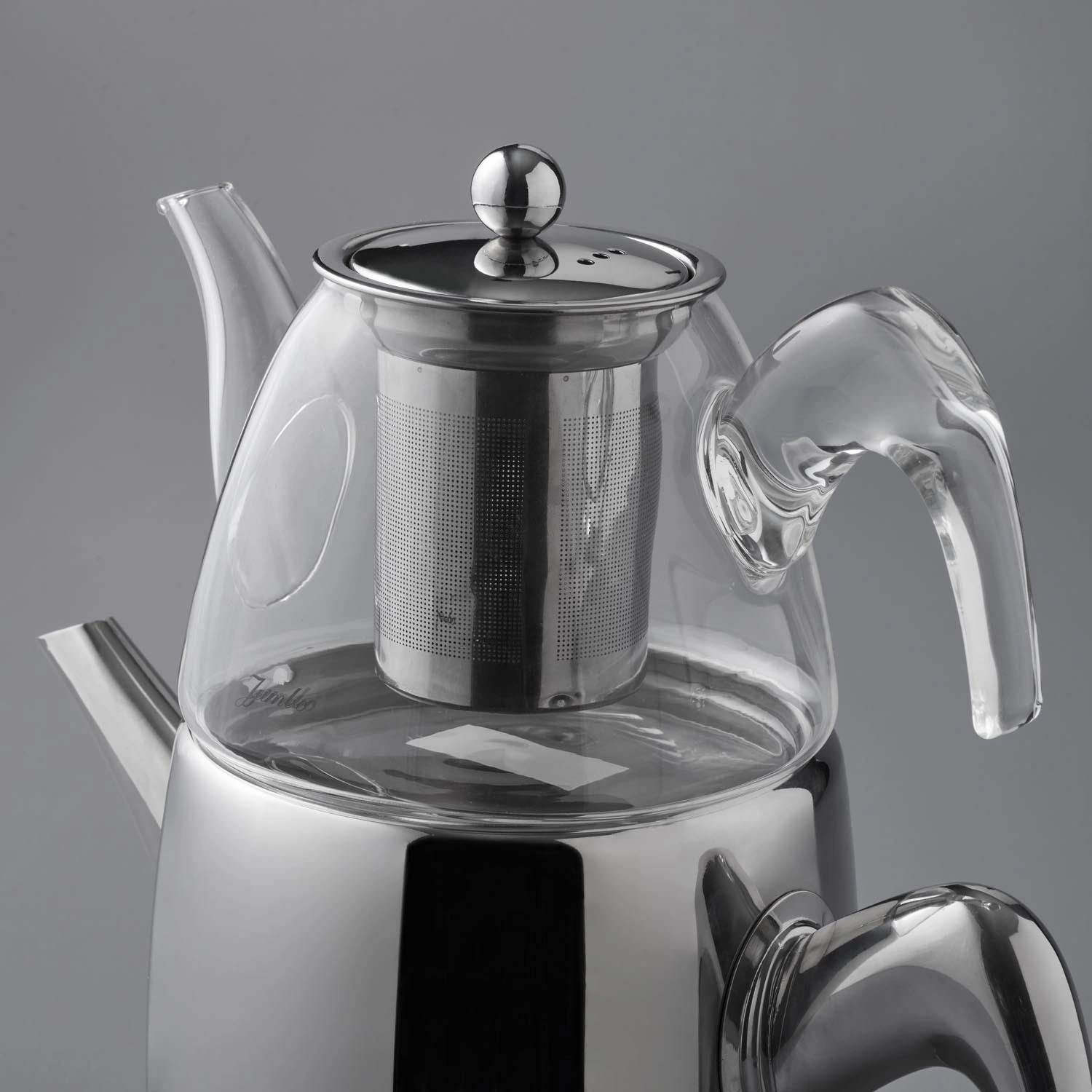 Ödüllü bir tasarımdan ilham alınarak geliştirilen, yüksek ısıya dayanıklı borosilikat cam üst demlik ve sağlam paslanmaz çelik alt haznesiyle çayın doğal aromasını koruyan, koku tutmayan ve kolayca temizlenen bu şeffaf çaydanlık, lezzetle estetiği bir araya getiriyor.