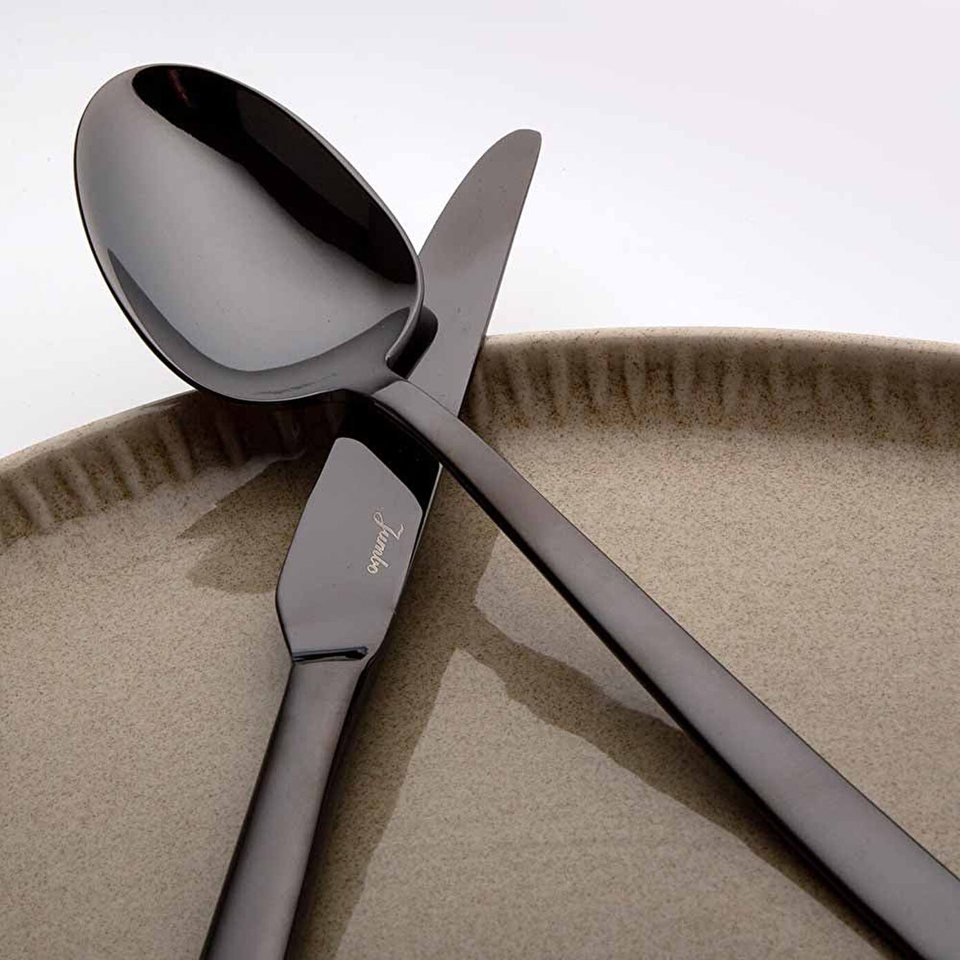 Jumbo 9400 Titanyum Siyah 12 Kişilik 84 Parça Çatal Kaşık Bıçak Takımı