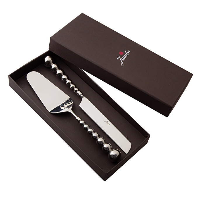 Jumbo Balle 2'li kek servisi tasarımındaki ince detaylarıyla sofralara zarif bir ışıltı katıyor. Setin bıçak ve pasta küreğinden oluşan parçaları özellikle sap tasarımlarıyla görenleri büyülüyor. Çelik ışıltısının boğumlu sap tasarımıyla sunan Balle kek servis setini dekoratif obje olarak bile değerlendirebilirsiniz. Buna ek olarak ürün farklı sofra ve mutfak tarzlarına uyum gösterebiliyor. İster modern ister klasik fark etmeksizin göz alıcı bir tatlı sunumu için ürünü tercih edebilirsiniz. Jumbo Balle 2'li kek servis seti hediyelik olarak da birebir. Ürünü doğum günü hediyesi, sevgililer günü hediyesi veya ev hediyesi olarak da seçebilirsiniz. İhtişamlı görünümüyle öne çıkan diğer sunum gereçlerini incelemek isterseniz ilgili kategorilerimizi ziyaret edebilirsiniz.