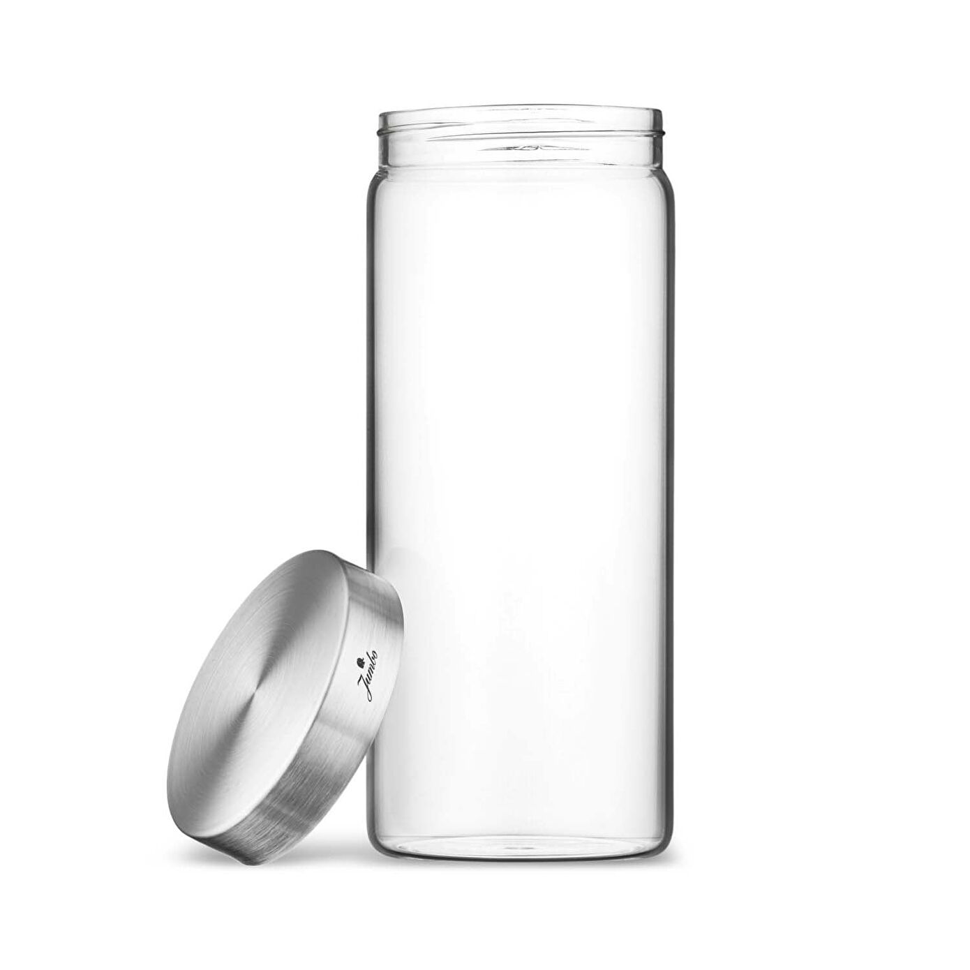 Zarif olan Jumbo cam kavanoz, şık tasarımıyla dikkatleri üzerine çekiyor. Kullanışlı ve pratik dizaynının yanı sıra bu ürün çevir - aç kapağıyla içerisinde gıdaları uzun süre taze tutmayı hedefliyor. Oldukça minimalist ebatlara sahip olduğu için bu cam saklama kabını özellikle çabuk tüketilen ve çok fazla yere ihtiyaç duymayan gıdaları muhafaza etmek için gönül rahatlığıyla kullanabilirsiniz. Aynı seriden farklı ebatlardaki diğer saklama kabı modellerini de temin ederek oluşturacağınız bu seti kilerinize şıklık katmak için de tercih edebilirsiniz. Sürekli olarak tükettiğiniz çay yapraklarınız, aromalı Türk kahveleriniz ya da daima elinizin altında barındırmak istediğiniz bademleriniz için harika bir seçenek!