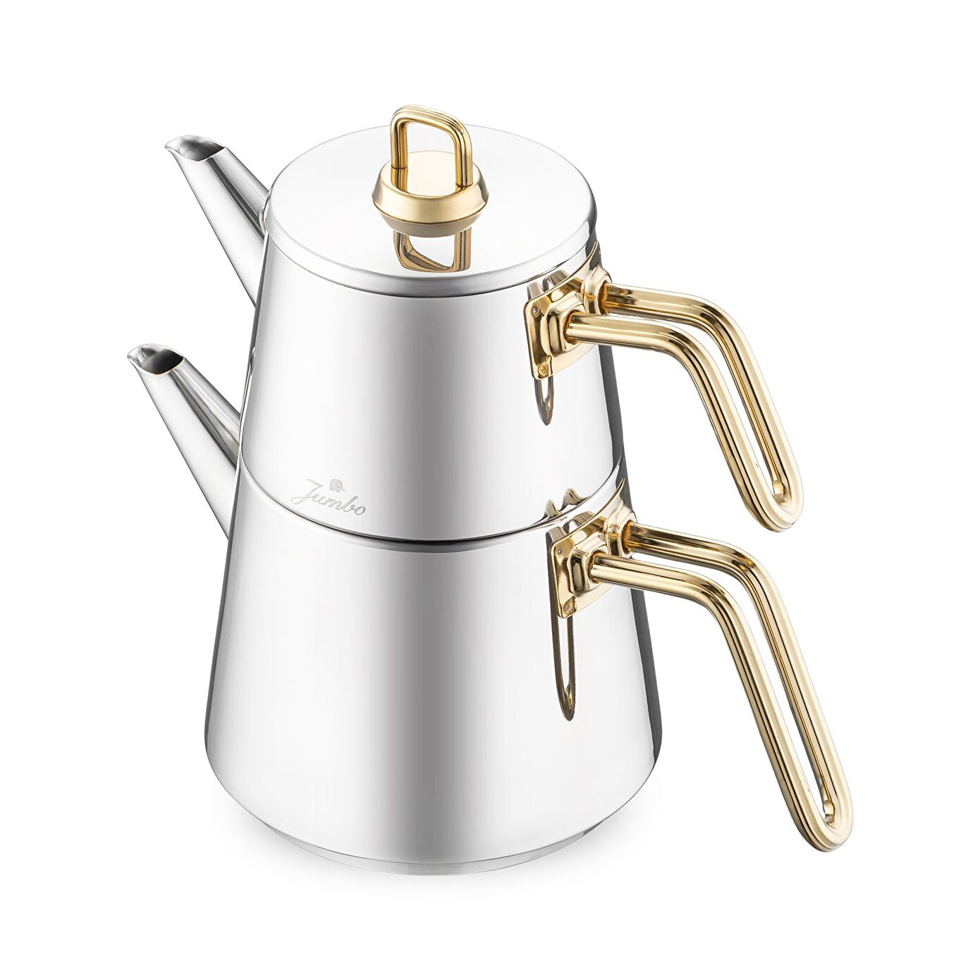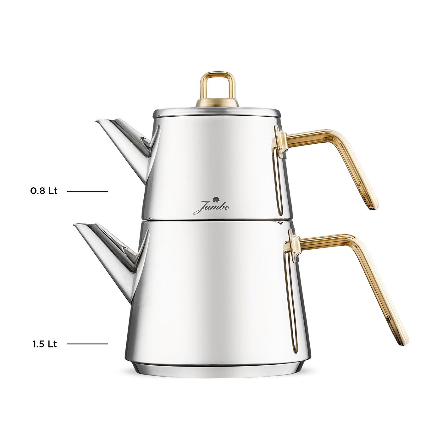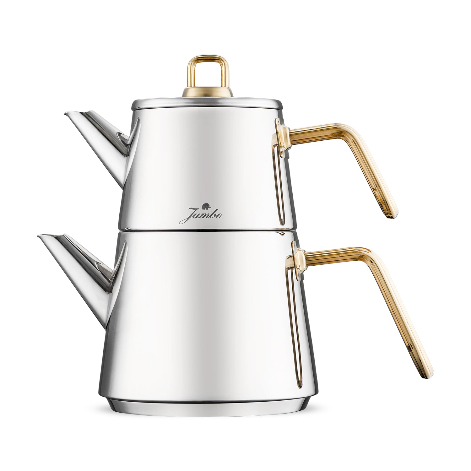 Gündelik olarak kullanmak için hem şık hem dayanıklı hem de ideal boyutlara sahip bir ürün arıyorsanız Jumbo Doha titanyum gold çaydanlık istediğiniz tüm özelliklere sahip. Zarif bir tasarıma sahip olan bu çaydanlık, titanyum ve gold detaylarıyla da gözleri üzerine çekmeyi başarıyor. Simetrik yapısı sebebiyle kullanımı da bir hayli pratik olan Jumbo çaydanlığa sahip olmak için siz de hemen sayfamızı inceleyebilir ve tek tıkla ürünü sepetinize ekleyebilirsiniz.