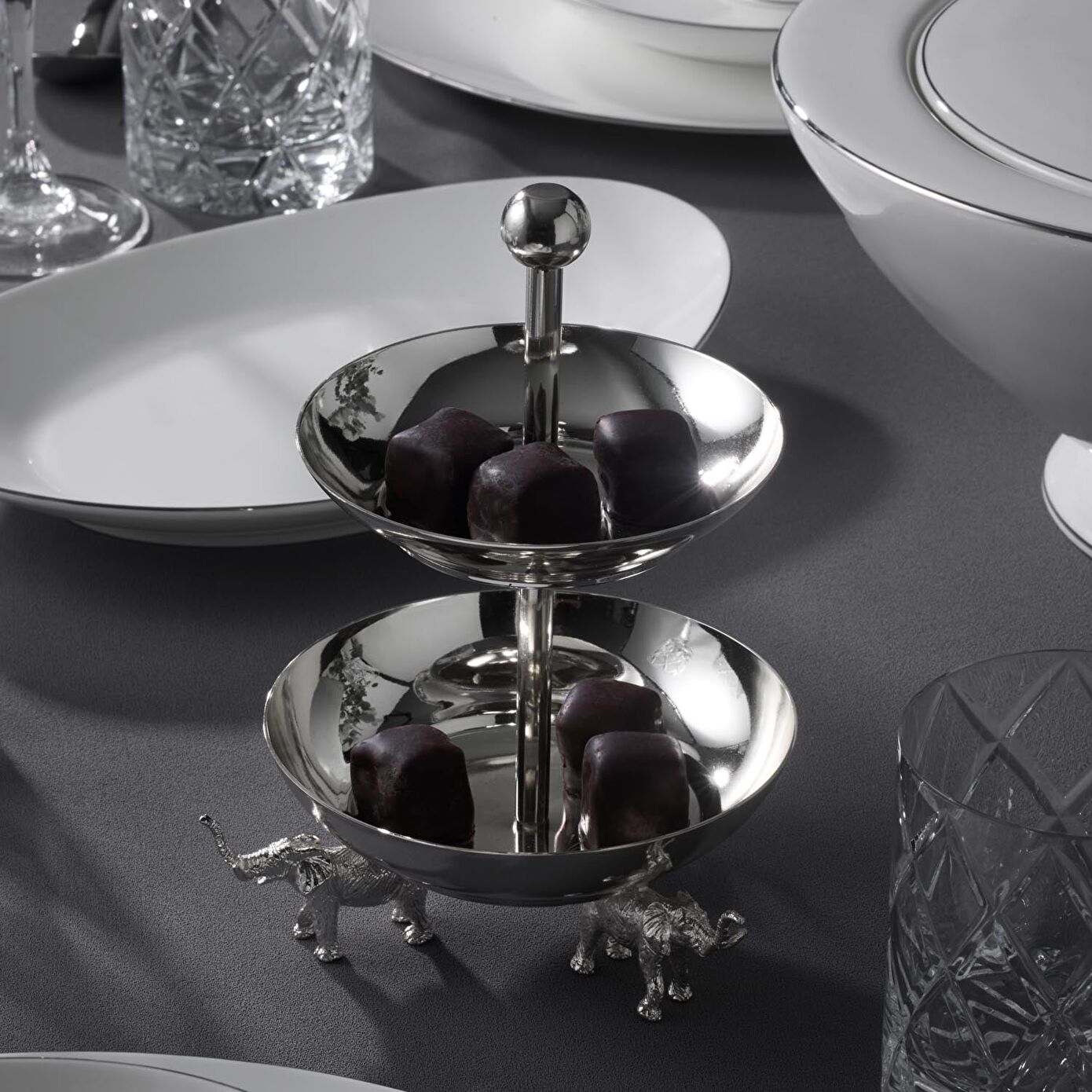 Jumbo fil ayaklı sunumluklar, üstün kaliteli pirinç malzemeden özenle üretilmiş ve zarif gümüş kaplama ile İşlenmiştir.