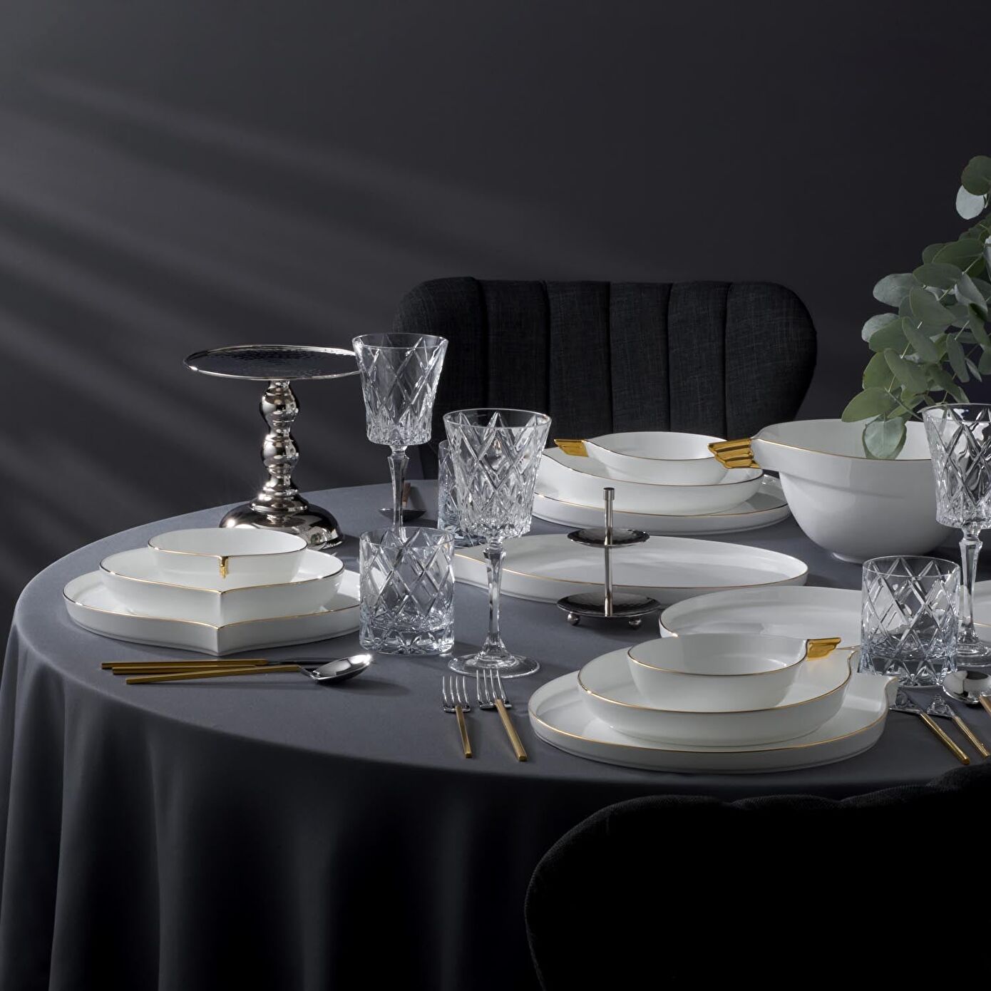 - Özel davetlerinizde sofralarınıza lüks bir hava katmak için altın detaylı çatal bıçak takımları ve kristal bardaklarla kombinleyebilirsiniz.