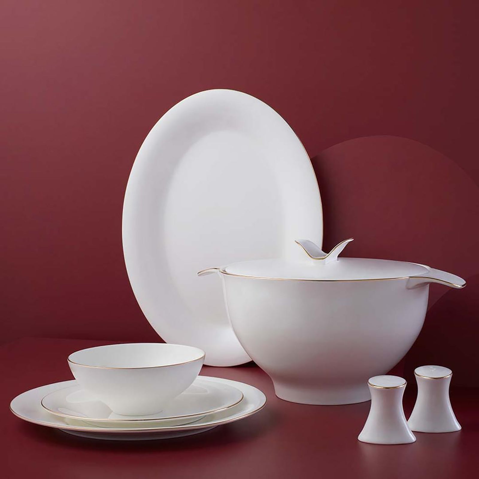 Jumbo Golda yemek takımı ile geniş aileler için sofra çözümleri sunuyor. 61 parçadan oluşan bu takım ile her bir kişiye özel yemekleri sunarken ortak ikramları da takımı bozmadan servis edebilirsiniz. Takım içerisinde kase ve yemek tabaklarının dışında meze tabağı, salata kasesi, oval tabak, çorba tenceresi, tuzluk ve biberlik de yer alıyor. Böylece dilediğiniz yemeği servis ederken yemek takımınız her yemekte size eşlik edebiliyor. Altın rengi detayları takıma lüks bir görünüm katarak yemek masanızın atmosferini değiştiriyor. Dayanıklı ve kaliteli malzemesi sayesinde uzun yıllar boyunca size eşlik edebilen bu yemek takımları pek çok çatal, kaşık, bıçak takımı ile de rahatlıkla uyum sağlayabiliyor. Siz de bu takımı kaçırmamak için hemen sepetinize ekleyebilir ve sipariş oluşturabilirsiniz