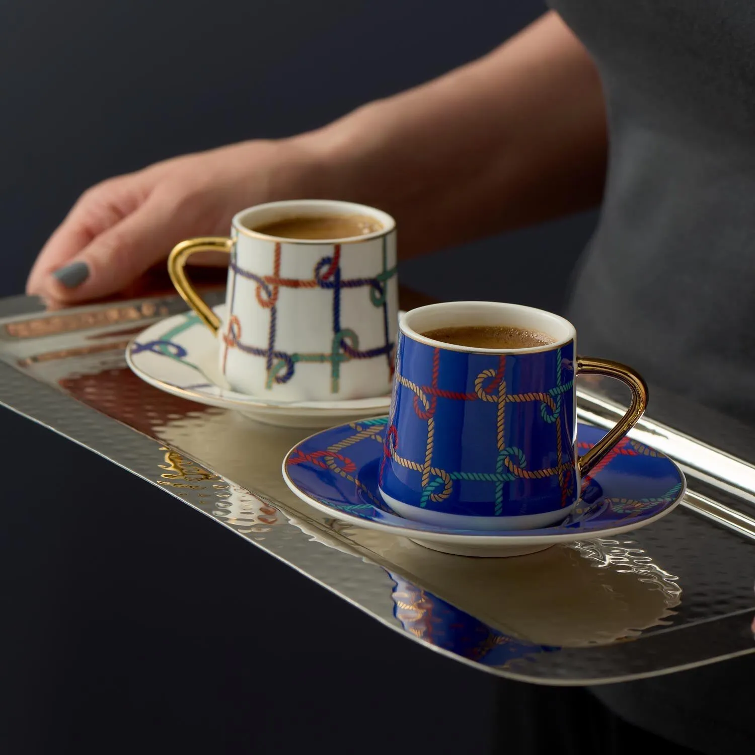 Üzerindeki denizci düğümü esenleriyle dikkatleri ilk bakışta üzerine çeken Jumbo Mareen 2 kişilik kahve fincanı takımında bir fincan lacivert üzerine gold, kırmızı ve turkuaz düğüm desenlerine sahipken diğeri beyaz fon üzerine lacivert, kırmızı ve turkuaz renkte düğüm desenleri ile bezenmiş. Fincanın sap kısmı ise zarif gold detaylarla kaplandığı için takıma ayrı bir güzellik katıyor. Ters konik şekli ile çağdaş bir tasarıma imza atan bu kahve fincanı takımı, eşiniz ya da en sevdiğiniz dostunuz ile karşılıklı Türk kahvesi içtiğiniz kıymetli anlara eşlik etmeye şimdiden hazır. Özel tasarım Jumbo kutusunda gelen bu ürünü kendiniz için satın alabileceğiniz gibi dilerseniz sevdiklerinize de armağan edebilir, ince düşünülmüş bir hediye olarak da onu kullanabilirsiniz. Kahve keyfinizi katlayacak bu harika set, Jumbo ayrıcalıkları ve kalitesiyle burada sizleri karşılıyor.