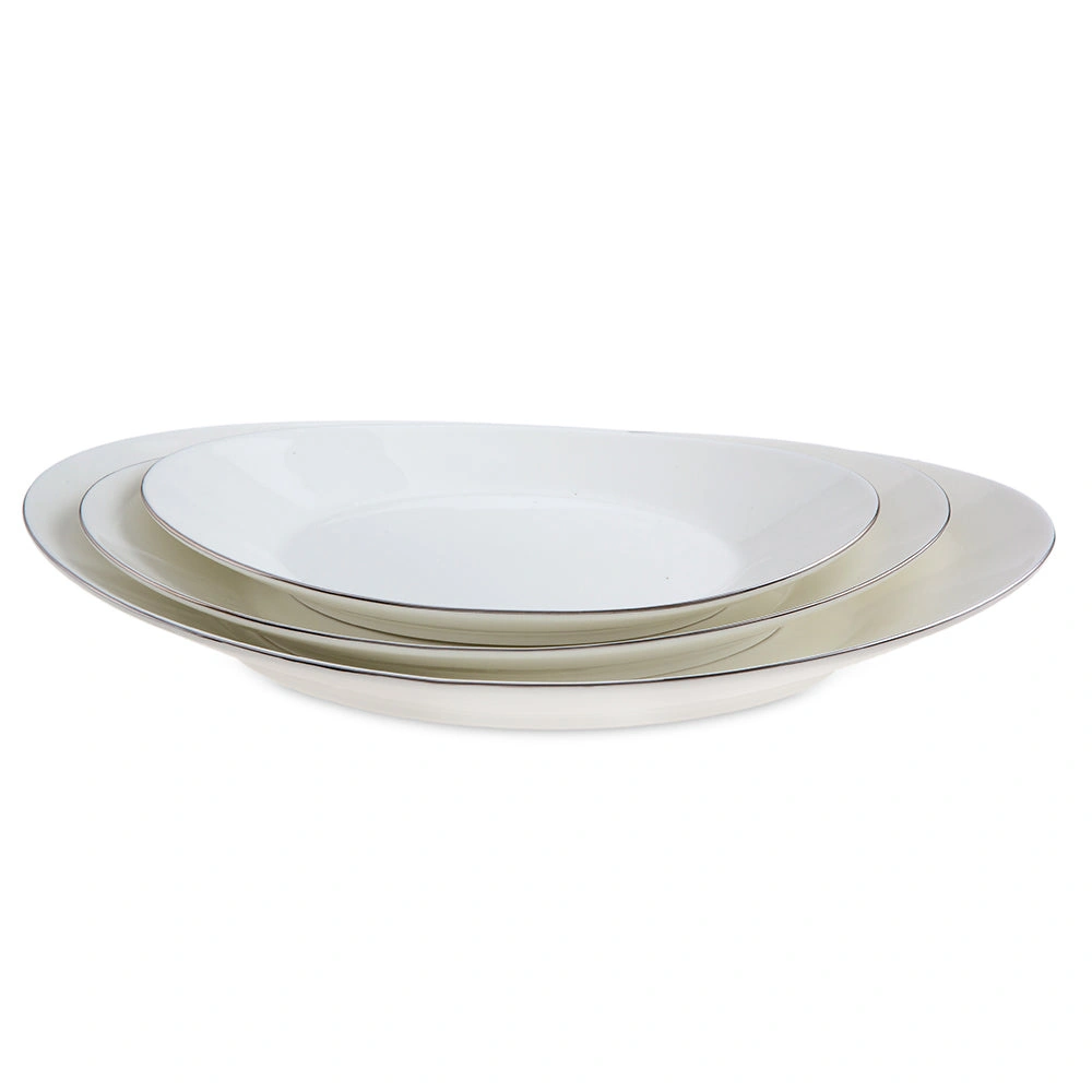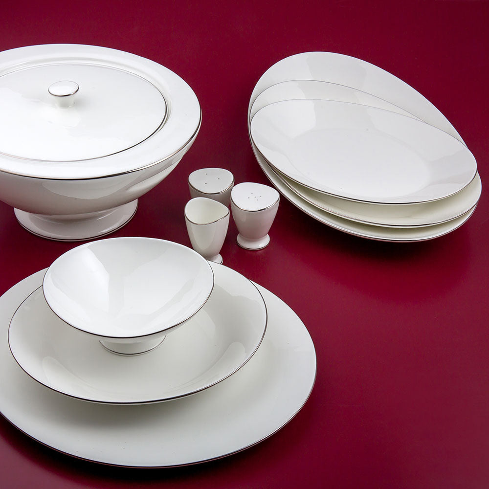 Bir beyaz yemek takımı 12 kişilik modeli olan Moon Platin, sade tasarımı ile modern sofraların gözdesi. Düz beyaz rengi ile sade yemek takımlarını benimseyenleri kendisine çeken model, kenarlarındaki ince koyu tonlu çerçevelere de sahip. Yuvarlak ve oval formları görebileceğiniz Moon Platin 12 kişilik yemek takımı, davetlerinizden özel yemekli etkinliklerinize kadar pek çok zaman dilimi için raflardan çıkmaya hazır. 12 kişilik kapasitesi ve 64 parça set içeriği ile de oldukça donanımlı bir sunum & servis hazırlığına girişebilirsiniz. Sofrasında sade bir tasarımı sevenler için ideal olan bu takım, zengin içeriği sayesinde çorbalardan ana yemeklere, mezelerden tatlılara kadar tüm menünüzü de layıkıyla sergilemenizi kolaylaştırıyor.