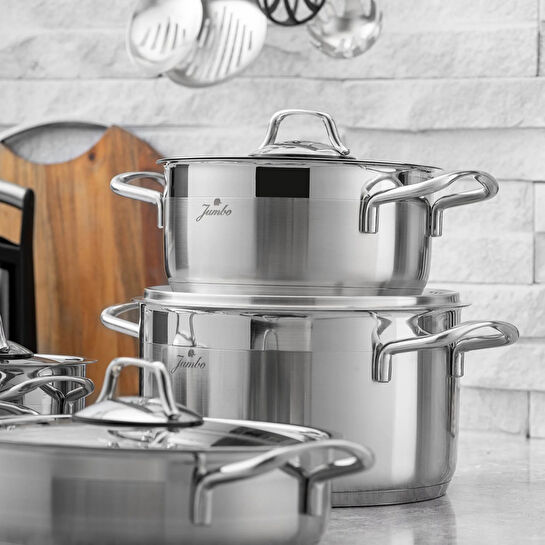 Jumbo Myra Çelik Tencere Seti, çeliğin dayanıklı yapısını ve zarafetini mutfaklarınıza taşır. İster günlük yemeklerinizde ister özel tariflerinizde kullanın, bu set her seferinde mükemmel sonuçlar elde etmenizi sağlar. Sofralarınıza kalite ve şıklık katmak için tasarlanmış bu set, mutfakta vazgeçilmez yardımcınız olacak.