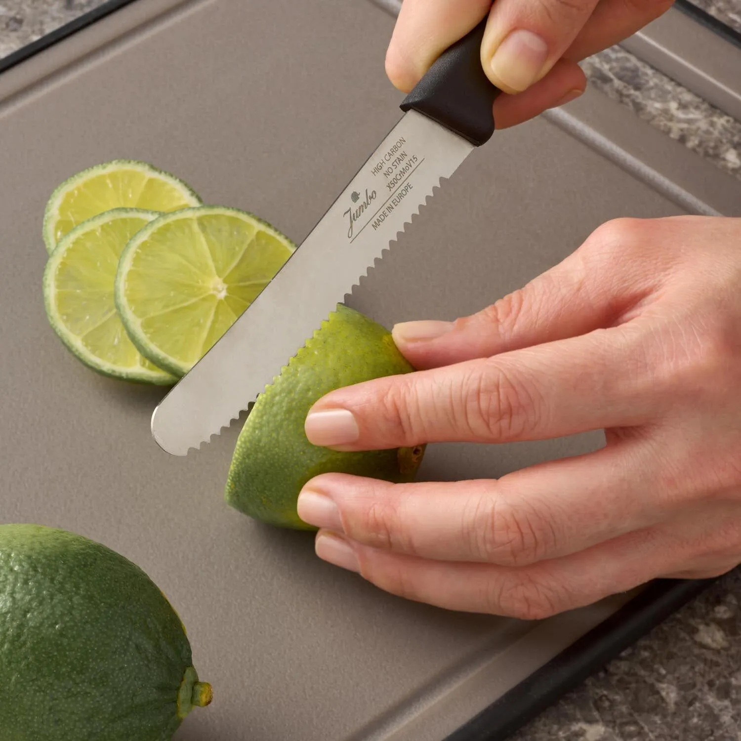 Mutfaktaki yeteneğinizi Jumbo Practico siyah dilimleme bıçağı ile göstermeye hazır olun! Soğan, et, tavuk, sebze ve meyve başta olmak üzere aklınıza gelebilecek her çeşit ürünü rahatlıkla bu bıçak ile doğrayabilir ve pişirmeye hazır hale getirebilirsiniz. Siz de mutfağınızda adeta sağ kolunuz olacak bu bıçağı hemen yakından keşfedin ve Jumbo ayrıcalıklarıyla satın alın!
