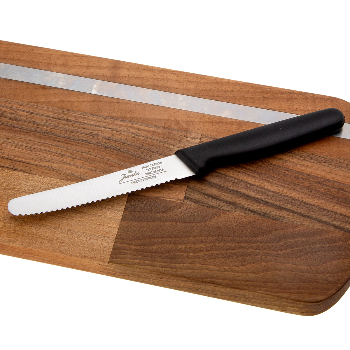 Yemeklerinizi hazırlarken mutfağınızdaki en büyük yardımcınız olmaya aday olan Jumbo Practico 11 cm dilimleme bıçağı, ideal boyutu, asil siyah rengi ve 57-60 Hrc değerindeki bıçak ucu sertlik ve dayanıklılık derecesi ile ön plana çıkıyor. Ürün pom malzemeden üretilmiş. Bu da onu üstün aşınma dirençli, ergonomik ve konforlu hale getiriyor. Pom malzemeden üretilmiş sap aynı zamanda üstün kayma özellikleri de barındırdığı için bıçağınızla dilimleme ve doğrama yaparken ekstra rahatlık sağlıyor. Siz de hemen şimdi Jumbo Practico serisinin güzelliğini keşfedebilir ve bu bıçak yardımıyla birbirinden nefis yemekler hazırlayabilirsiniz.