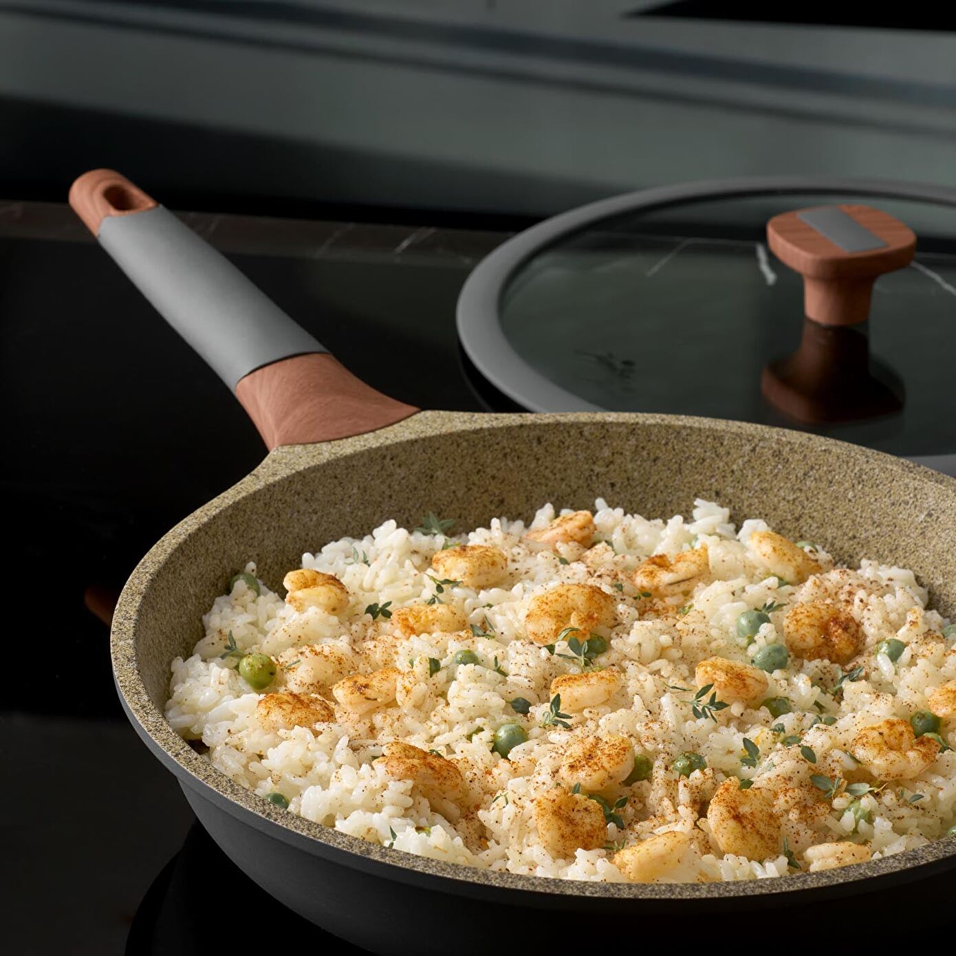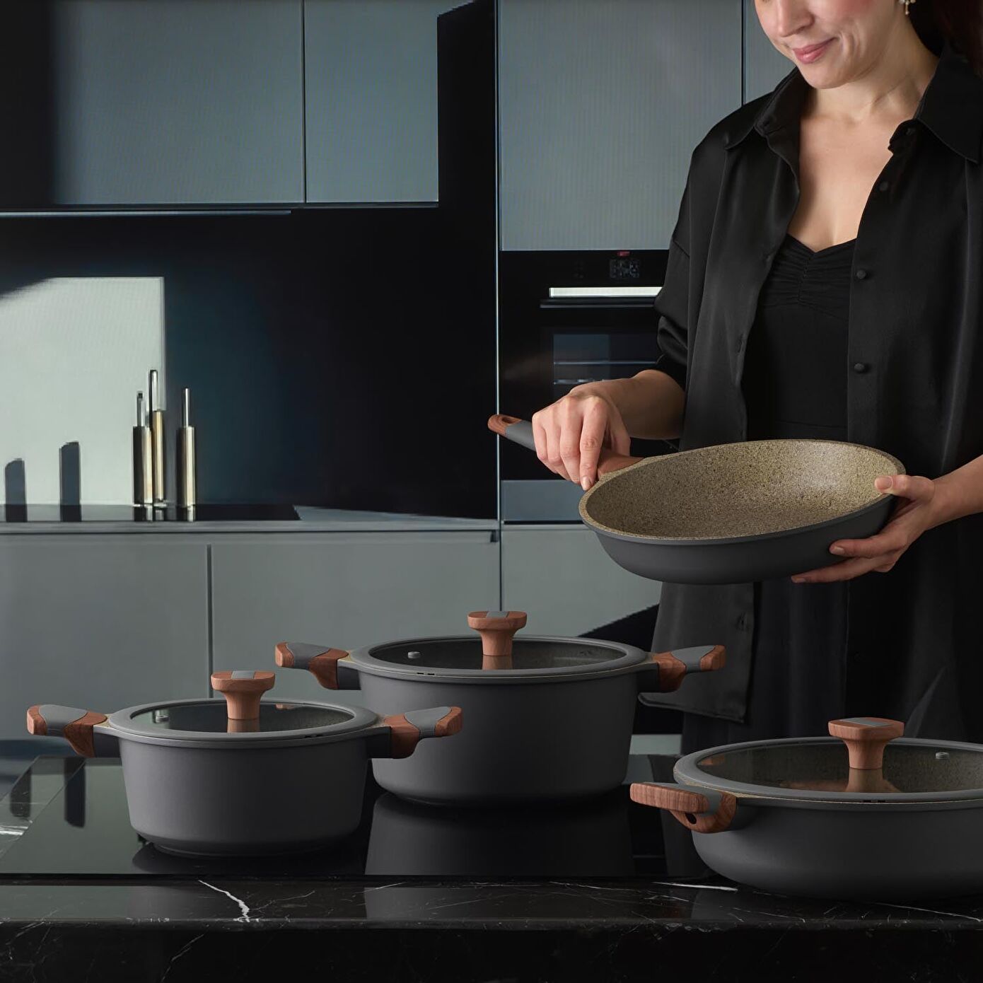 - Yanmaz yapışmaz granit iç yüzeyi sayesinde pişirme deneyiminizi gönül rahatlığıyla yapabilirsiniz.