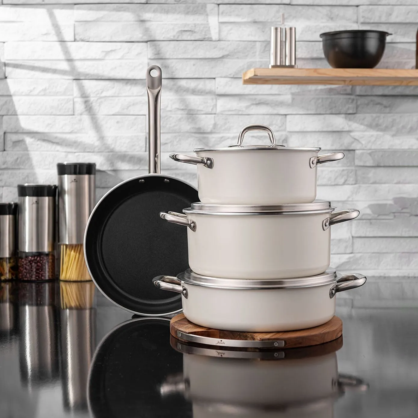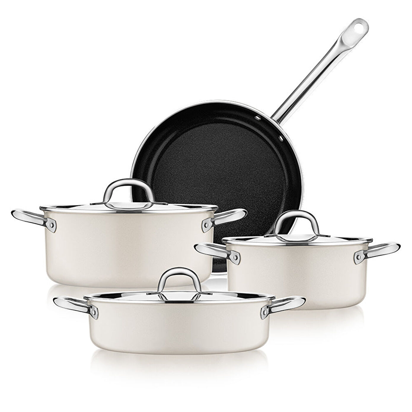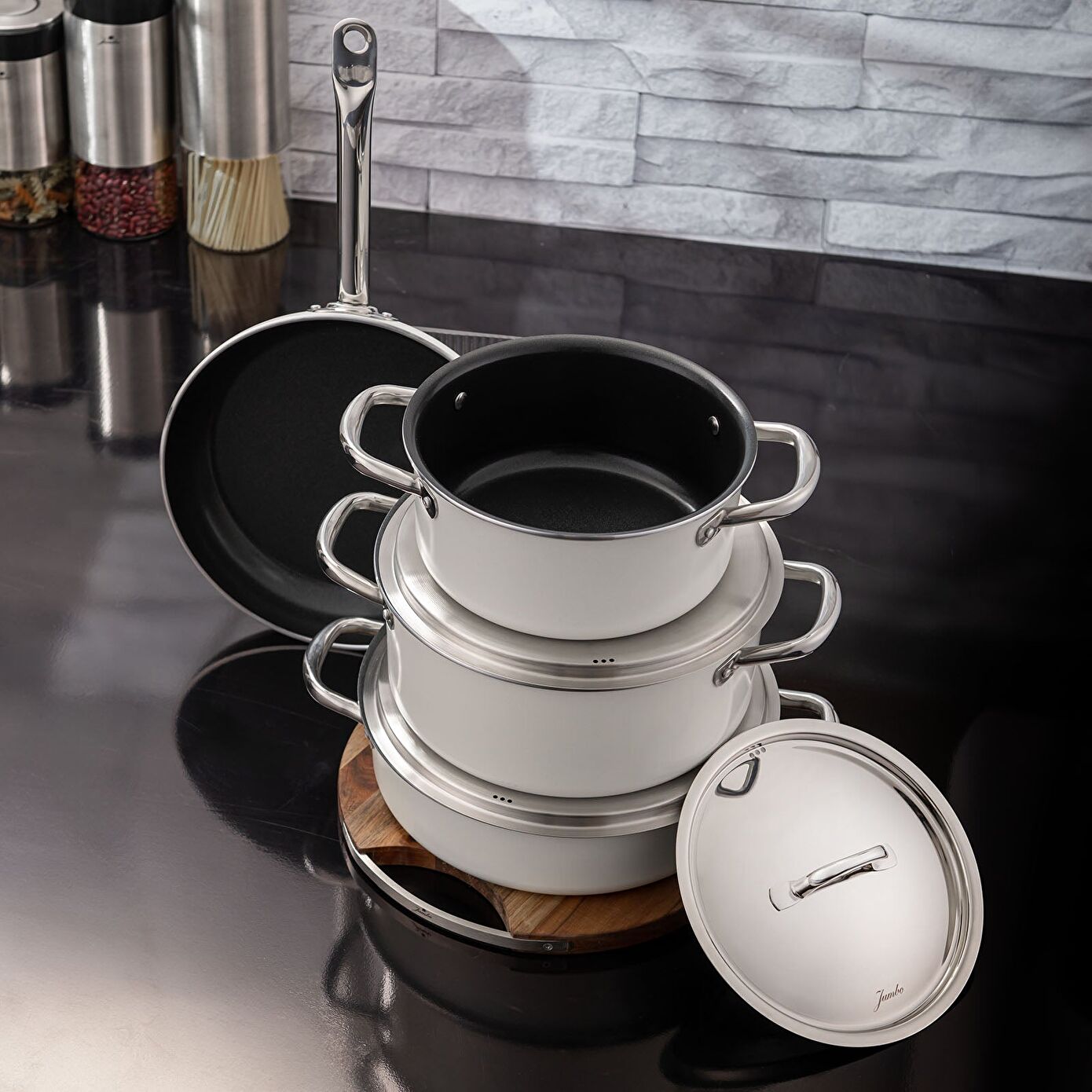 Jumbo Swiss Crystal Krem 7 Parça İndüksiyon Tabanlı Tencere Seti