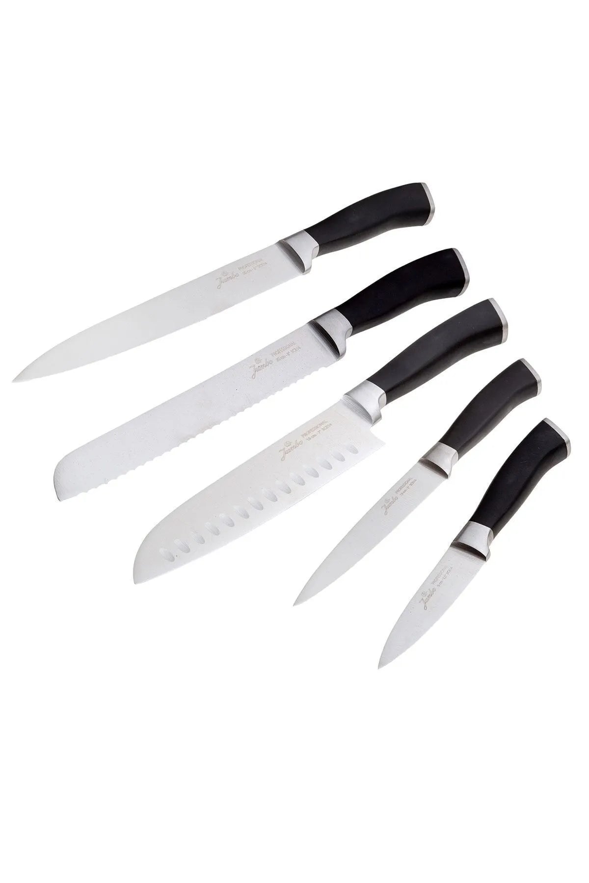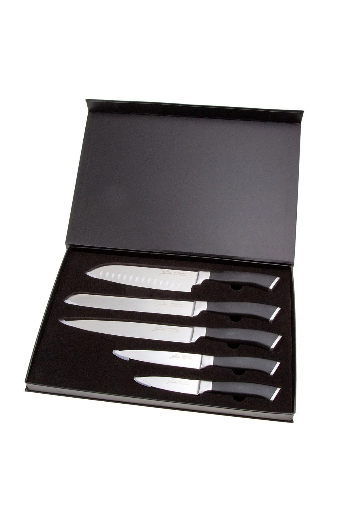 Jumbo Utsuri Professional bıçak seti mutfağınıza profesyonellik ve konfor katmaya geliyor! Her parçasında Jumbo kalitesini hissettiren bu set yemeklerinizle evinizin şefi olmanız için birebir. Sevdiklerinizi hazırladığınız lezzetlerle mest etmek istiyorsanız doğru adrestesiniz. Jumbo Utsuri Professional bıçak seti ergonomik yapısıyla et, sebze, meyve veya balık fark etmeksizin tüm gıdaları ölçülü bir şekilde doğramanıza olanak tanıyor. Çünkü setin içerisinde yer alan her parça kesme, doğrama ve soyma gibi farklı işlemlere özel olarak üretiliyor. Yemek hazırlama serüveninize profesyonellik katmak için ürün gönül rahatlığıyla sepetinize ekleyebilirsiniz. Jumbo Utsuri Professional bıçak setinin sahip olduğu ergonomik sap tasarımı kontrollü ve güvenli bir tutuş sunuyor. Uzun süren yemek hazırlama süreçlerinizi konforlu bir şekilde geçirmek Utsuri bıçaklarıyla mümkün. Bu seti tercih ederek hem yemek hazırlama hem de sunum işlemlerini ustalıkla tamamlayın.